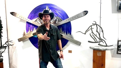 If you asked he would call himself a snowmaker, but Michael Perks is a little more than that. He's a Red Seal Millwright with over 25 years experience in the ski industry, working primarily at Lake Louise Ski Hill. He became know for his ability to fix obscure problems with innovative inventions of his own making. This ability to think differently, create with his own hands & work with huge objects can be seen in his art. He has figured out a way to infuse stunning hand-painted colours into metal that is unlike any other metal artist out there. Combined with purposeful grinding in the metal he can make it look like water is moving, snow has ski tracks or a boat left a wake in it's tail. Michael's portfolio includes flat wall art, elaborate statues and large public art pieces. He has won Best In Show three times at the illustrious Calgary Stampede Fine Art show and now has more than a dozen public art statues in place across Western Canada.