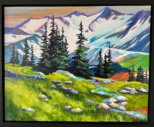 Deeply engaged in her community, Cheryl is active with Sun Peaks ART ZONE and The Kamloops Arts Council, regularly showcasing her work in venues including The Art We Are, The Vic, Royal Inland Hospital, and even Vancouver International Airport. Each piece reflects her love of nature, colour, and creative expression.