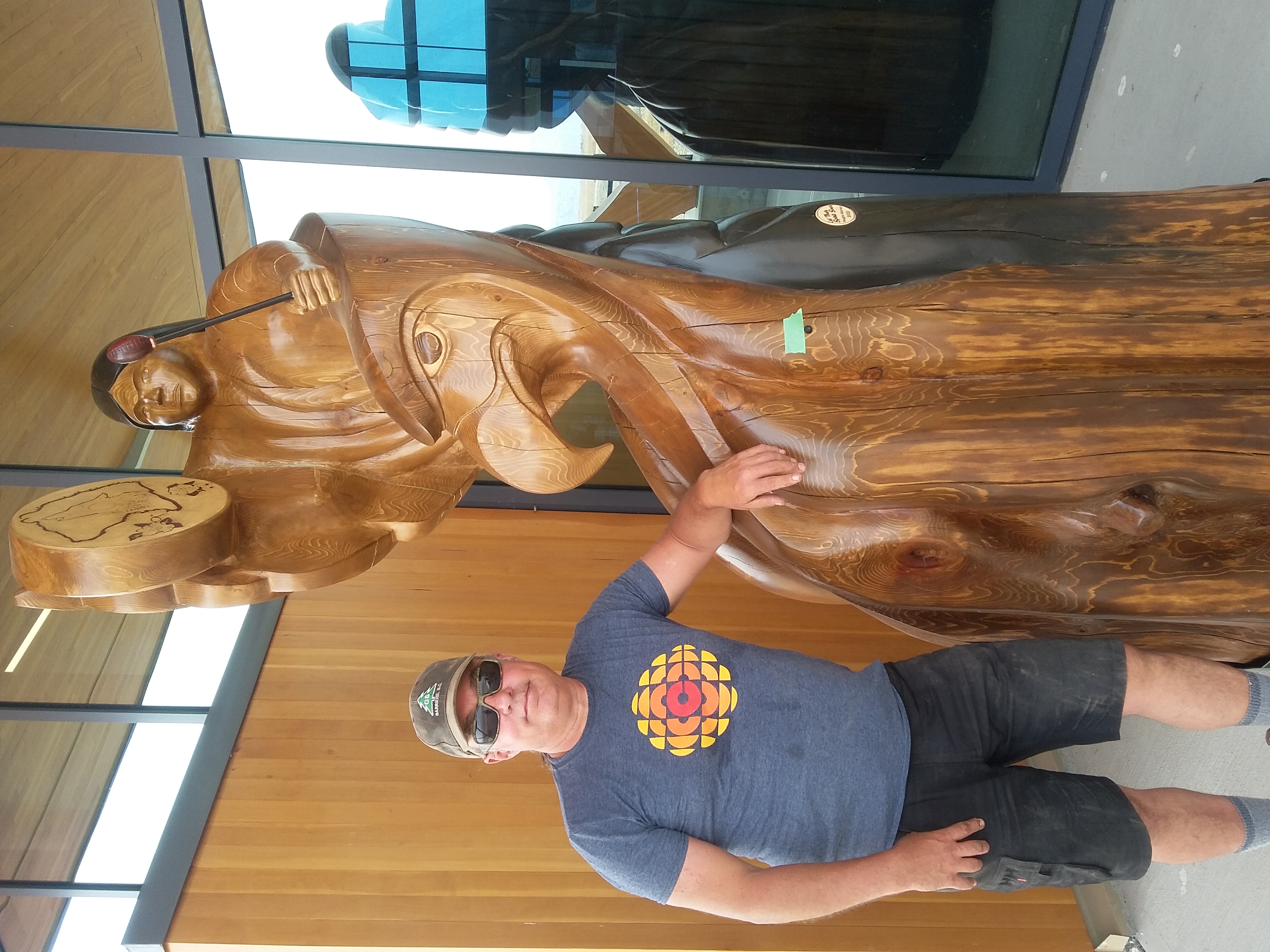 After returning to Kamloops, Vaughn expanded his practice to include wood carving, illustration, and graphic design. Notable projects include designing the City of Kamloops’ Tournament Capital logo (2001), carving the 20-foot Riverpole (2002), and contributing to the 2005 Venice Biennale as part of Rebecca Belmore’s team. He later served as Exhibition Designer at the Kamloops Art Gallery, working with leading contemporary Canadian artists.
