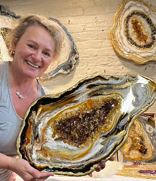Yvette is captivated by the way crystals grow inward to form geodes—slowly, deliberately, and beautifully. Her art reflects this process, channeling the energy and symbolism that geodes and agates have carried for centuries. Believed to offer perspective, strengthen spirituality, and alleviate stress, these natural forms embody resilience and transformation.