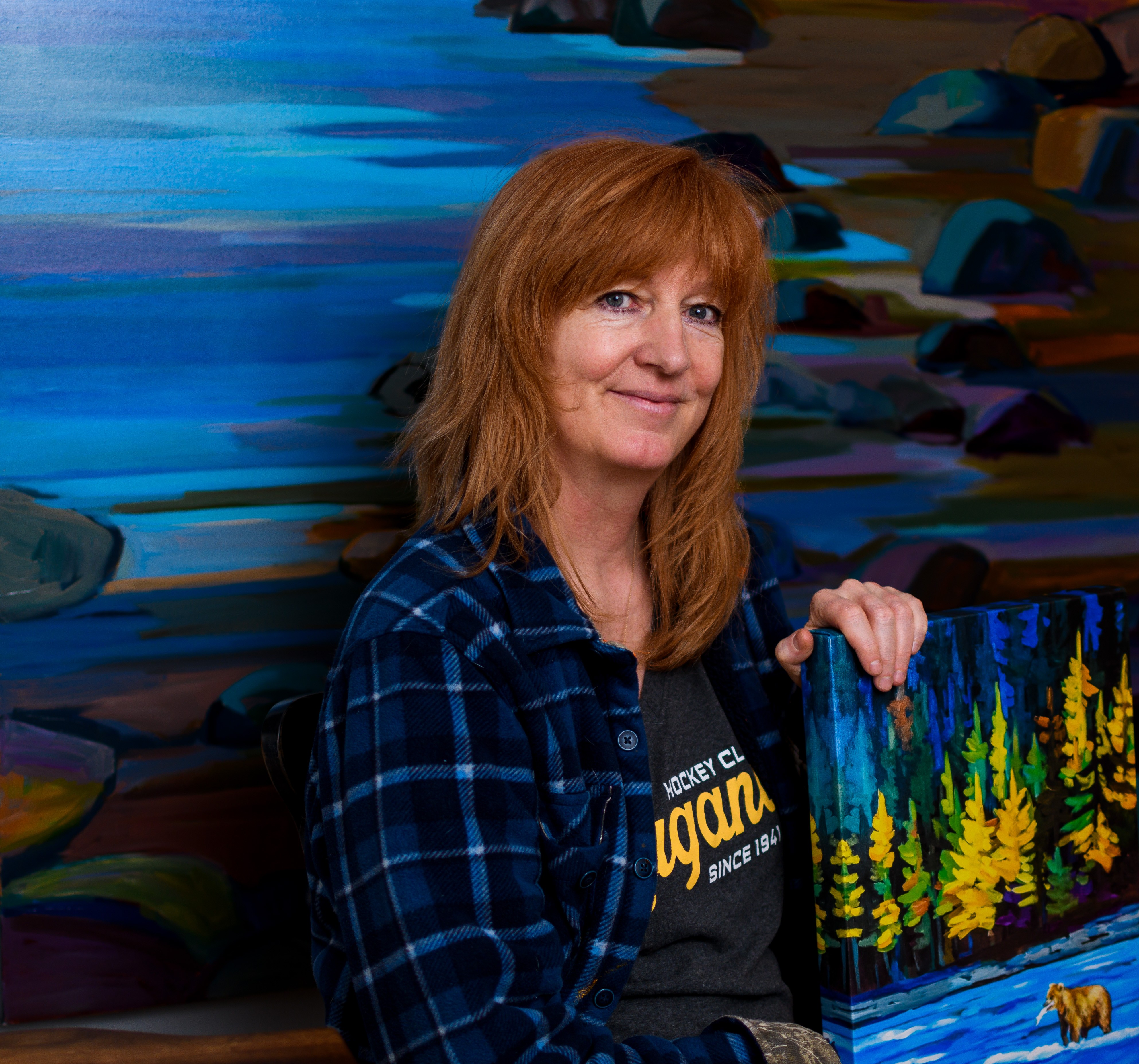 Over time, she has developed her own style, using bold colours to evoke mood and emotion rather than creating exact replicas of places, aiming to forge a personal connection between the viewer and nature. Her goal is to transport viewers into the majesty and tranquility of the natural world, and her work is now held in collections across Canada and the United States.