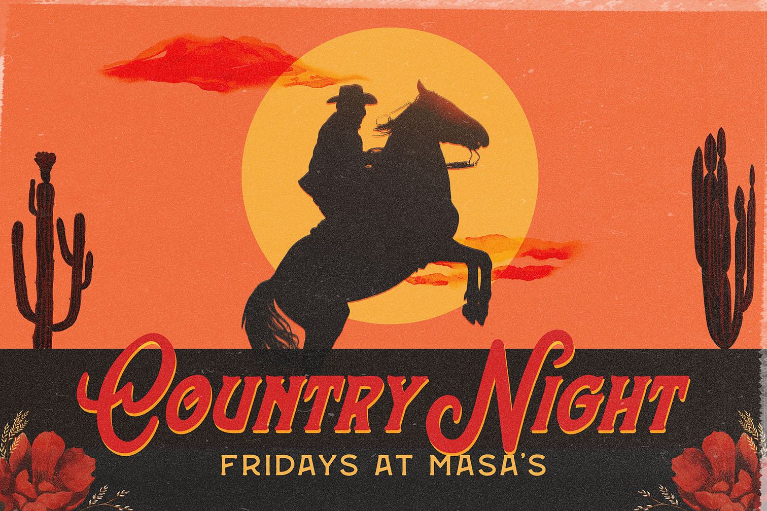 Kick off the weekend with Friday Country Night at Masa’s! Enjoy a fun-filled evening with great country music, rotating country-inspired dinner specials, signature country cocktails and good company.