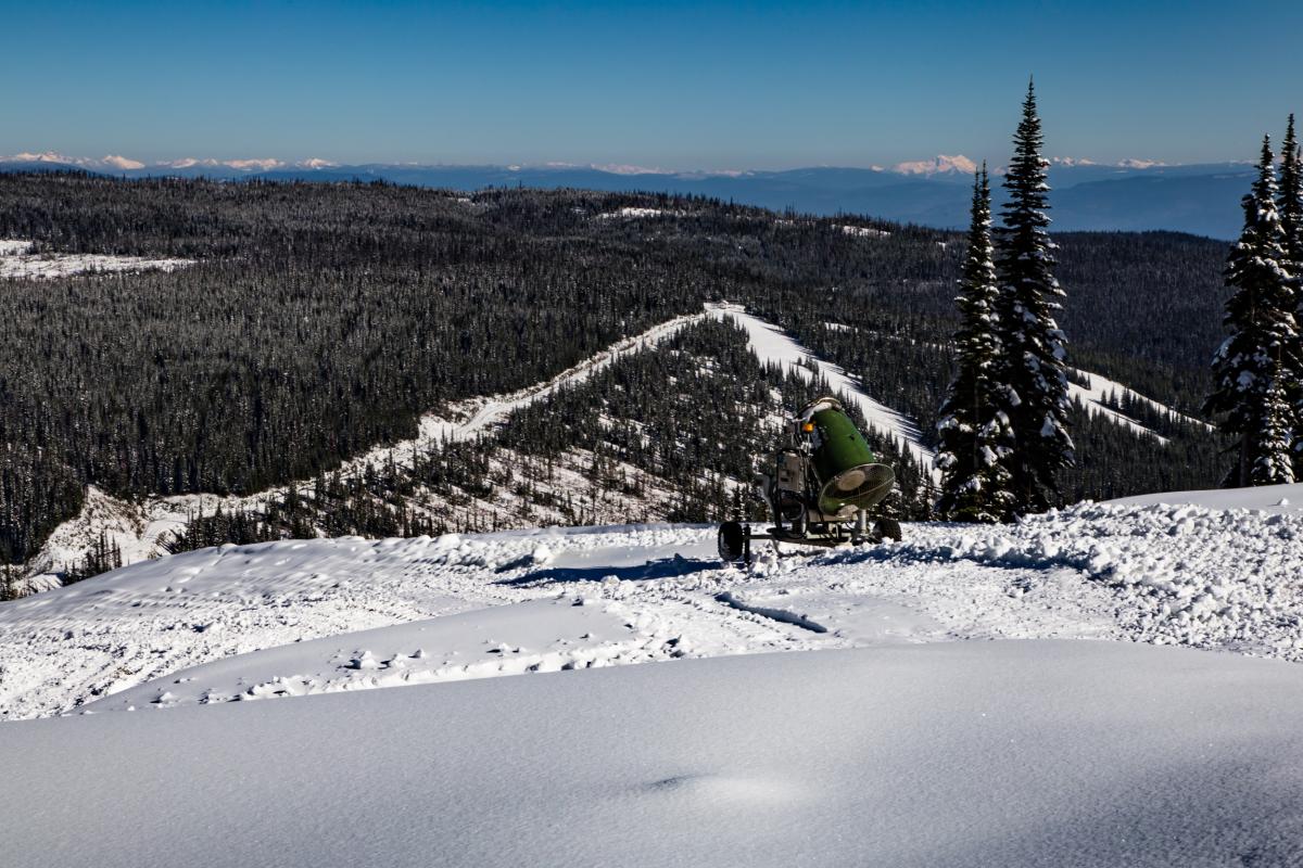 The Sun Peaks snowmaking plant is mostly gravity fed with water sourced from on-mountain storage. This results in significant energy savings compared to systems used at other resorts.