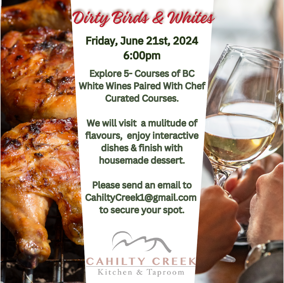 We look forward to bringing you some new flavours and dishes while pairing and featuring some beautiful British Columbian white wines.