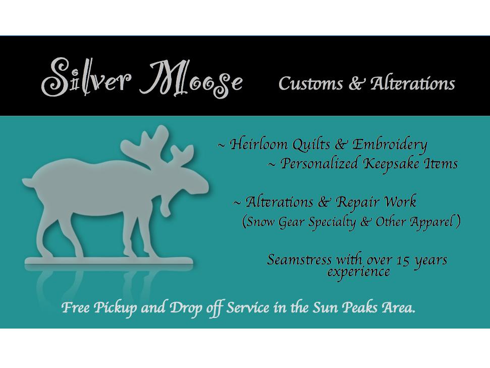 Torn ski pants? Too long or too short? Silver Moose Customs can fix that, specializing in regular alterations and other sewing work. Want a personalized item to remind you of your trip to Sun Peaks? We can do that as well, check out our website for more! Complimentary pick-up/drop-off services within the Sun Peaks area.