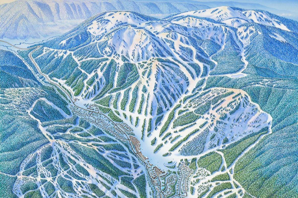 The 2019/20 edition is the fifth trail map that James Niehues has created for Sun Peaks over the years, stretching back to his first visit in 1993. While James has hit the slopes of Sun Peaks in the past, describing the view from amongst the snow ghosts at the top of Tod as his favourite part about skiing here, he didn’t make the trip north from his home in Colorado this time. Instead, he relied on aerial photographs to create the new piece.